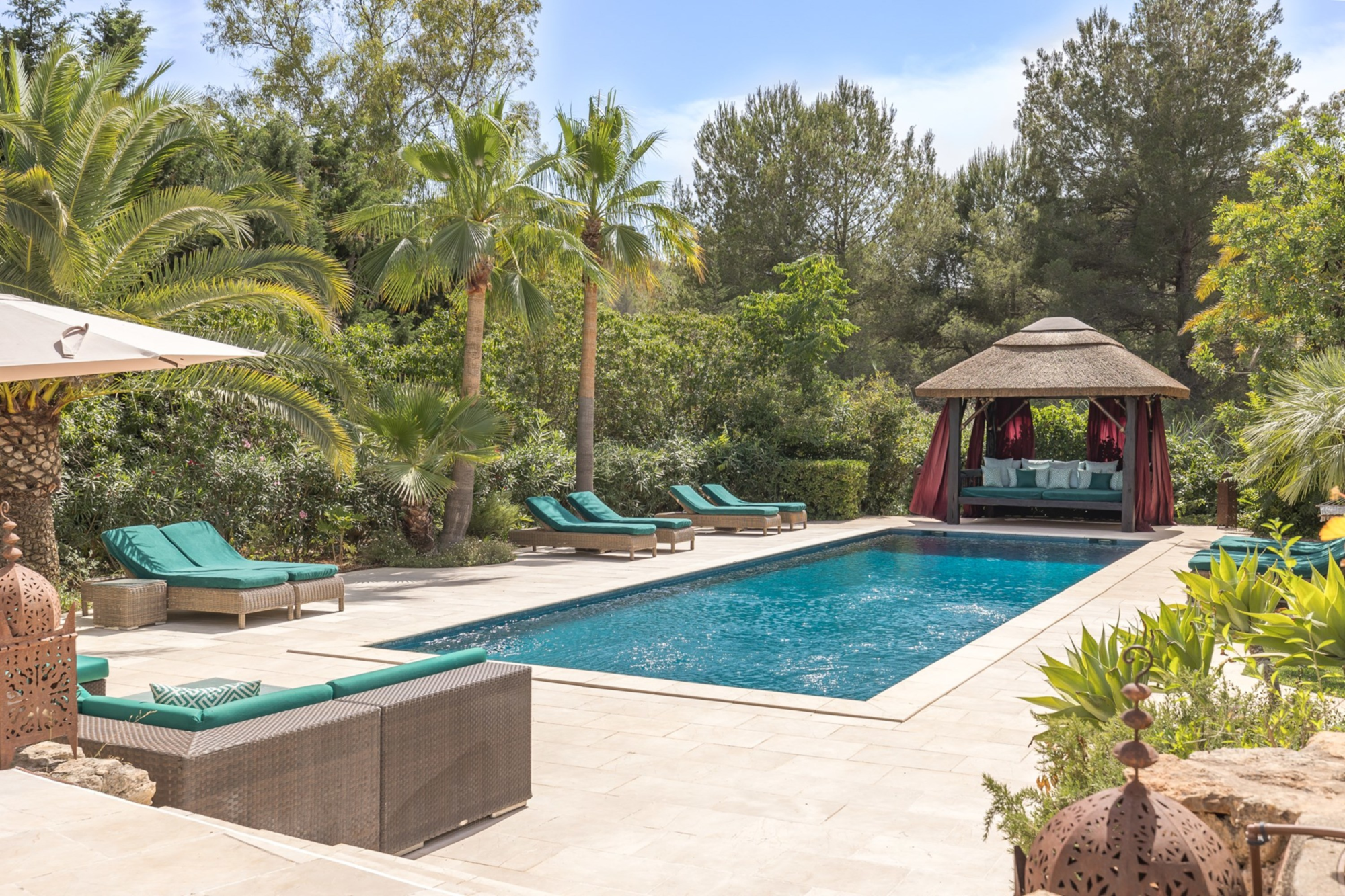 This property boasts a beautiful mature garden featuring a large swimming pool, huge terrace area and Balinese style chill out pavilion. Completing the outside space there is also Al-fresco dining, BBQ, daybeds, sofa seating, a swing bench, yoga area and free standing hammock.